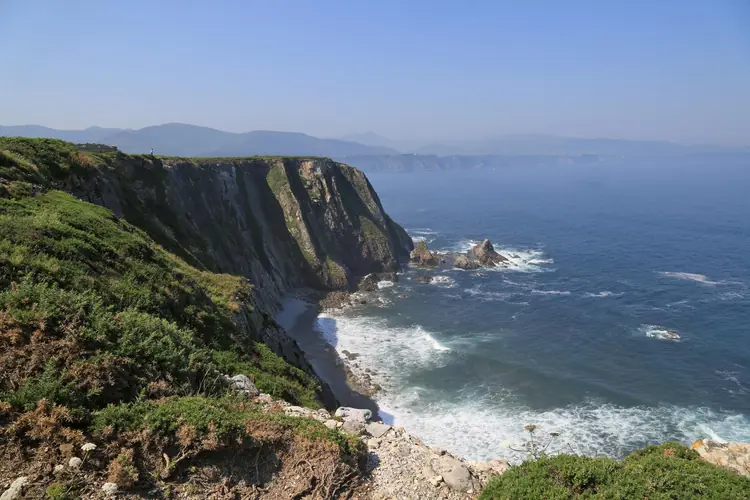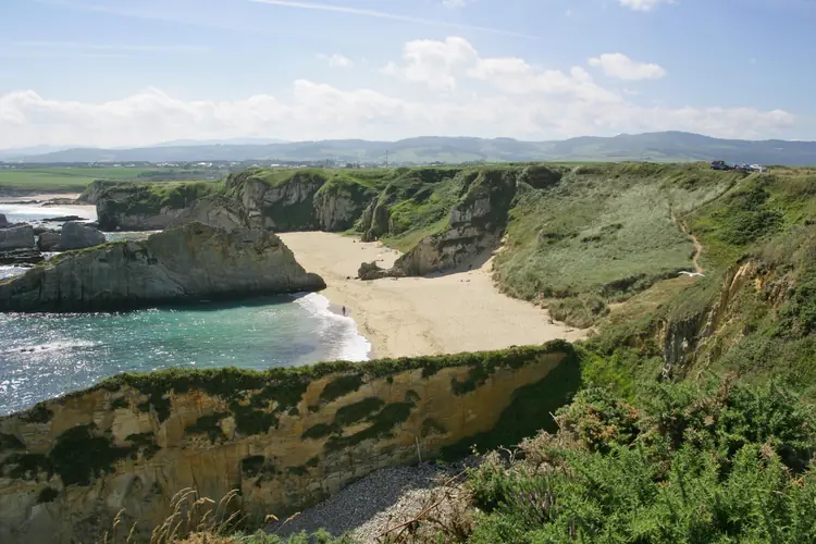 Playa de La Ribera del Molín. Siguiendo un angosto camino que parte de Castañeras se descubre el acantilado desde el cual se avista, al fondo, integrada en una relevante área de conchas, la apacible playa de La Ribera del Molín, perten ...